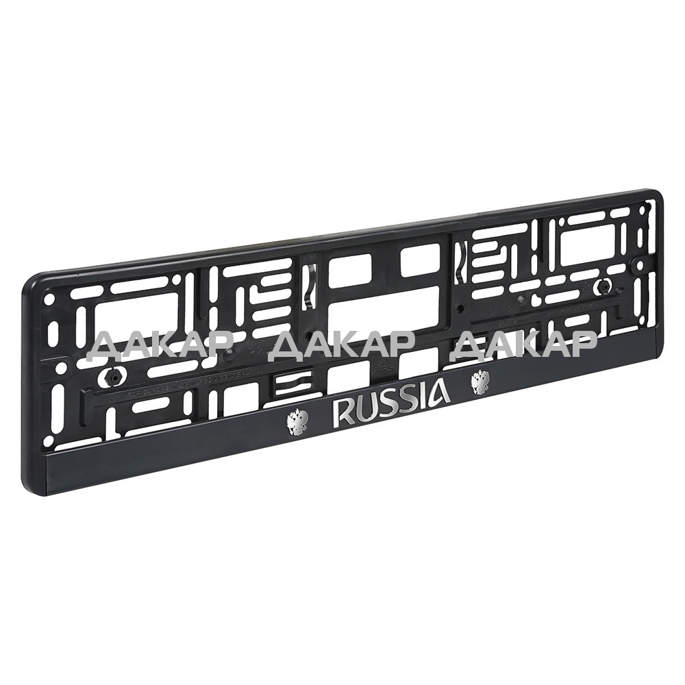 Рамка изготовлена из морозостойкого пластика и устойчива к перепадам температур. Установка рамки не займет много времени, т.к. изделие имеет простой механизм крепления, представляющий собой нижнюю планку с боковыми защелками. Данная модель рамки украшена рельефной надписью «Russia» и гербом России на нижней части изделия.
