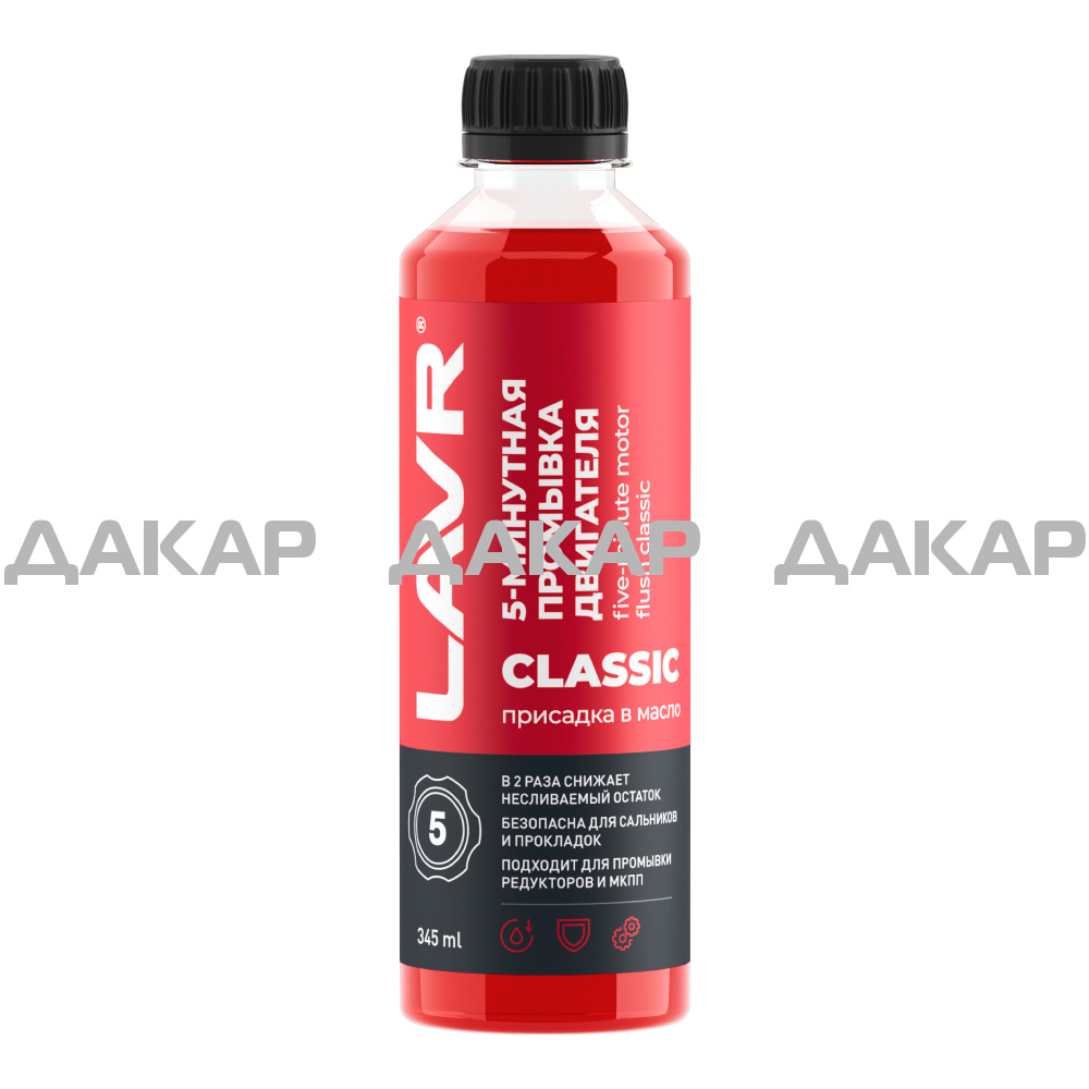5-минутная промывка двигателя Классическая очищает систему смазки от отложений, образовавшихся в процессе эксплуатации. Обеспечивает диспергирующее свойство масла для взвешивания загрязнений и безопасно выводит их, не забивая маслоприемник и каналы. Препятствует закоксовыванию ЦПГ, освобождает все внутренние гидроприводы, увеличивает срок службы масла на 10 – 20% за счет уменьшения несливаемого остатка и повышает эффективность смазки. Промывка безопасна для резиновых деталей и совместима со всеми видами моторных масел. Подходит для систем смазки всех типов бензиновых и дизельных двигателей.