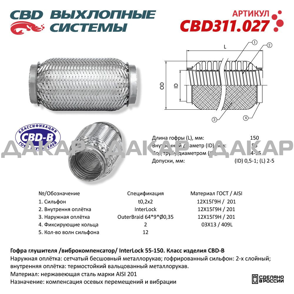 ГОФРА СОЕДИНИТЕЛЬНАЯ 55х150 3-сл. InterLock "СВД" СПб