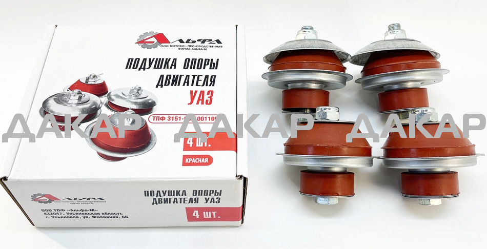 ПОДУШКА ДВИГАТЕЛЯ УАЗ ст/обр красная (к-т 4 шт.) "АЛЬФА"