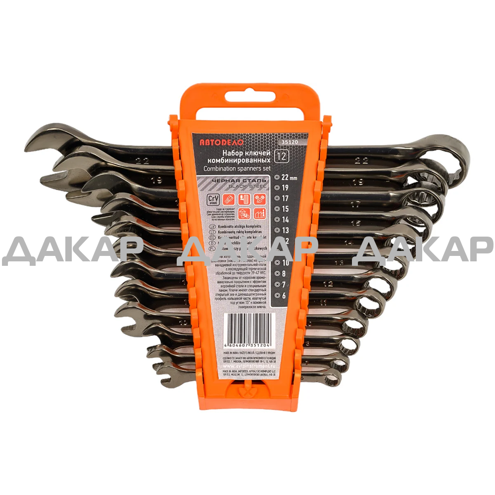 НАБОР КЛЮЧЕЙ (комб) 12 предметов (Черная Сталь) "АвтоДело" (35120)