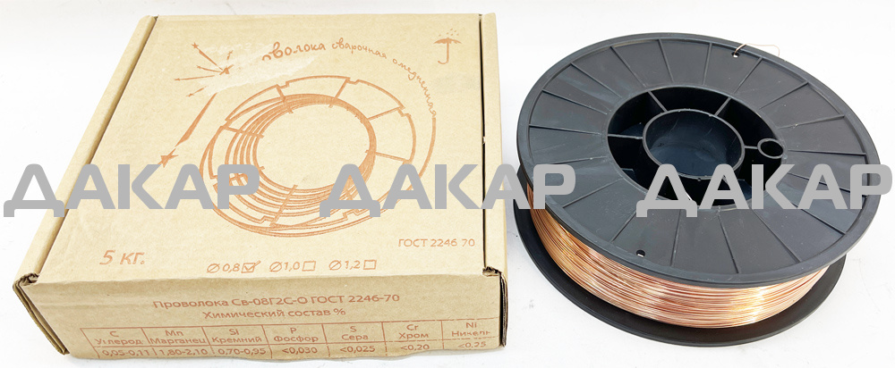 ПРОВОЛОКА СВАРОЧНАЯ 0,8 мм омедненная (5кг) РОССИЯ
