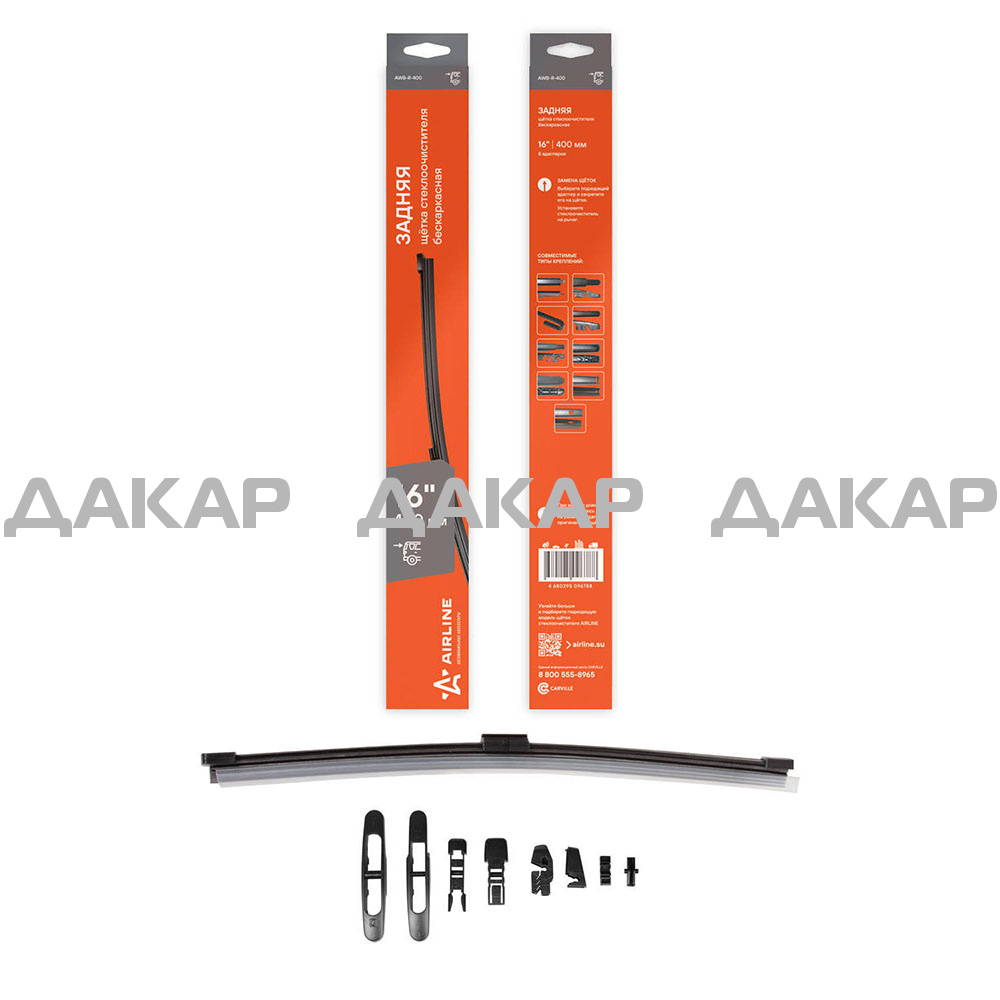ЩЕТКА С/О "AIRLINE" 16" 400 мм бескаркасная задняя (8 адаптеров) (1 шт.)